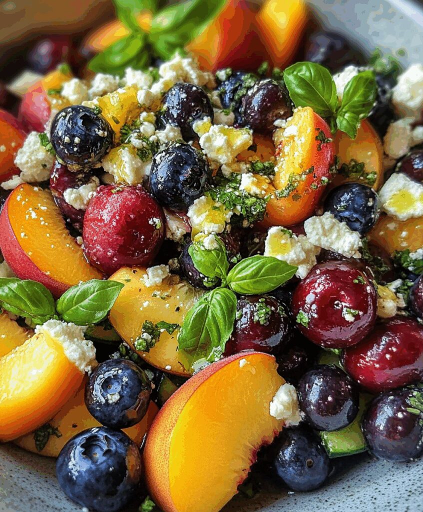 This vibrant Blueberry Peach Feta Salad is the perfect summer dish—light, refreshing, and packed with sweet, savory, and tangy flavors. Juicy peaches, plump blueberries, creamy feta cheese, and crisp greens come together with a simple balsamic vinaigrette for a salad that’s as beautiful as it is delicious.