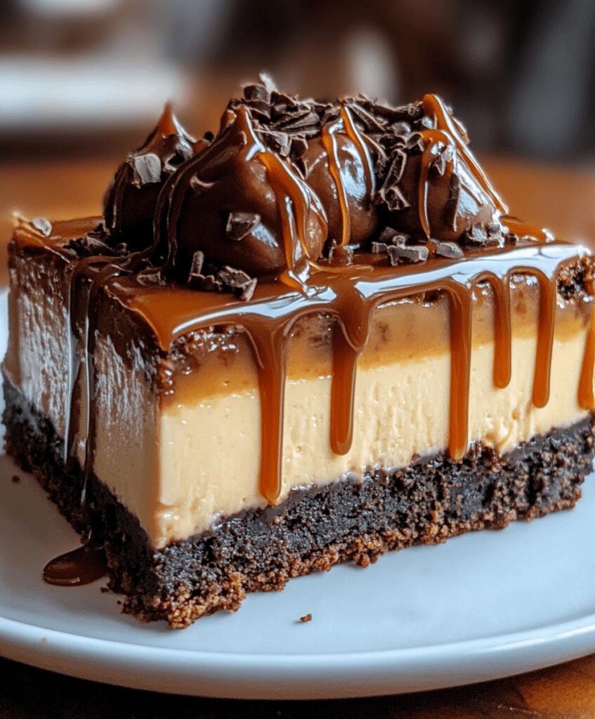 ???? Layers of Decadence – Fudgy brownie + creamy cheesecake + buttery caramel = perfection!