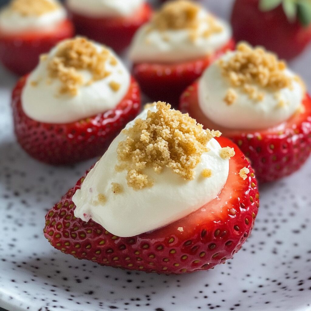 These Cheesecake Deviled Strawberries are the ultimate no-bake treat: juicy, ripe strawberries halved and filled with a rich, creamy cheesecake filling. They’re a sweet twist on the classic deviled egg, but way more fun — and totally addictive.