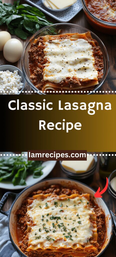 This hearty classic lasagna combines layers of rich meat sauce, creamy ricotta, and melty mozzarella for the ultimate comfort meal. Perfect for gatherings or a family dinner!
