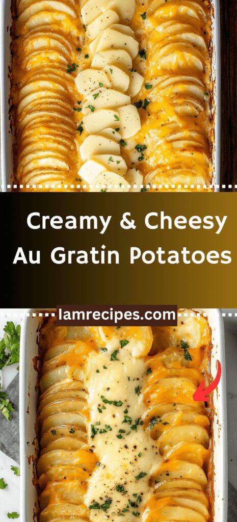 Cheesy, creamy au gratin potatoes made with three types of cheese for a rich, indulgent side dish everyone will love! This easy recipe features Yukon gold potatoes, sharp cheddar, gruyere, and parmesan cheeses for an irresistible, cheesy layer in every bite. Whether you’re making it for the holidays or a weeknight dinner, these au gratin potatoes are sure to impress. Add bacon for extra flavor, and make it ahead for an even more convenient meal!