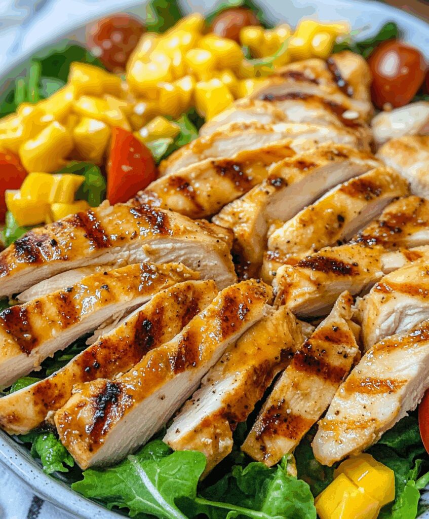 - Top with the sliced grilled chicken.